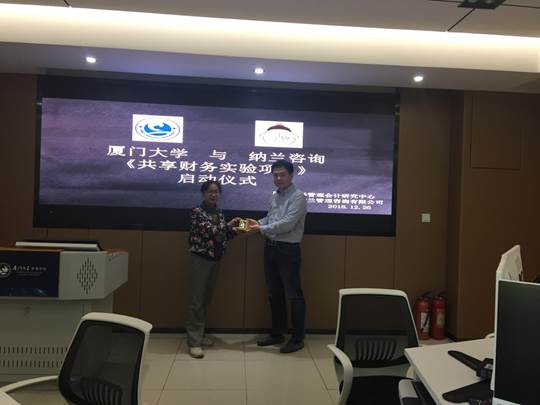 2018年12月26日下午,厦门大学管理会计研究中心《共享财务创业实验项目》启动式于嘉庚一号楼408室举行。本项目由厦门大学管理会计研究中心和厦门市纳兰管理咨询有限公司(简称“纳兰咨询”)携手展开。出席本次启动式有郭晓梅教授、杨绮副教授、纳兰咨询总经理那洪涛及其员工、数位科研生等。