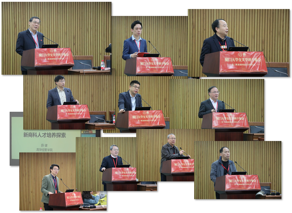 论坛邀请了清华大学经济管理学院薛健教授 、九牧集团有限公司董事长林孝发、我校数学科学学院谭绍滨教授、我校管理学院中国能源政策研究院林伯强教授、我校航空航天学院洪文兴副教授,我校管理学院朱建平教授,我校信息学院/人工智能研究院史晓东教授,我校王亚南经济研究院和经济学院钟威教授,我校信息学院/人工智能研究院纪荣嵘教授等学界和业界的专家,结合自身或团队的最新研究成果和企业需求作了精彩纷呈的报告,分享了新商科人才培养、商科与其他学科交叉融合的心得体会。与会专家学者就新商科的发展、应用做了热烈深入的交流。