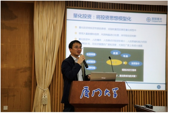 第四位嘉宾是富国基金量化投资部总经理王保合博士。作为全国首批从事量化投资和股指期货衍生品研究与投资的先行者,王保合博士所带领的量化团队管理资产规模超过700亿,曾荣获中国资管金鼎奖“最佳量化投研团队”等荣誉。在“量化投资在国内公募基金的应用”主题演讲中,王保合博士比较了量化投资与主动投资在思想和操作上的区别,描述了量化投资在中国的发展状况,以市值因子模型为例深入浅出地介绍了量化投资策略的构建流程和要点,为校友们展现了量化投资的魅力与前景。