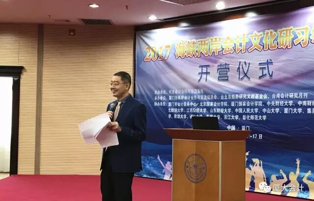 2月14日, 2017海峡两岸会计文化研习冬令营暨两岸数位会计应用实务研讨会在厦门大学举行。厦门大学管理学院院长叶建明教授、厦门国家管理学院院长黄世忠教授、财政部会计准则委员会副主任狄恺、厦门市财政局副局长叶茂伟、台湾会计研究发展基金会董事长王怡心教授、台湾企业会计准则委员会主任委员卢联生博士、台湾政治大学林美花教授等30多名专家学者和17所高等院校的60多名财会类专业学生出席了开幕式。厦门大学会计发展研究中心、厦门市两岸会计交流与合作促进会会长刘峰教授主持了开幕式。