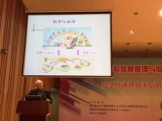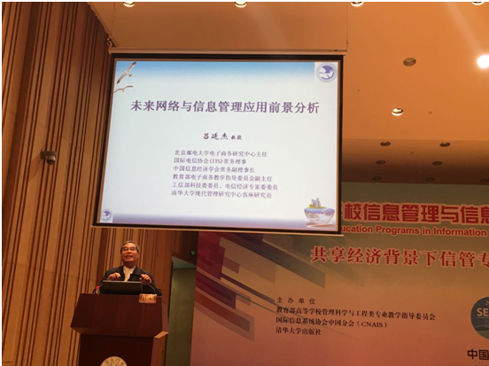 教育部管理科学与工程专业教学指导委员会主任、清华大学经济管理学院学术委员会主任、EMC讲席教授陈国青、国家发改委电子政务工程中心主任助理、国家信息中心大数据管理应用中心秘书长任茂松、教育部电子商务教学指导委员会副主任、北京邮电大学电子商务研究中心主任吕廷杰教授做了主题报告。分别从新形势下的管理挑战与研究、国家电子政务项目的咨询与评估、未来网络与信息管理应用等角度分享和解读了信息管理领域等最新进展。接下来的2个半天,来自高校、企业的专家学者毛基业教授、张瑞东教授(美国威斯康辛大学奥克莱尔分校)、凌鸿教授(复旦大学管理学院信息管理与信息系统系主任)、朱国清博士(广州时代大数据公司董事长)、税琳琳副教授(北京新思课陈慧心教育有限公司、中国传媒大学设计思维中心主任)分别就大数据、设计思维、区块链、课程建设等主题进行了专题报告。