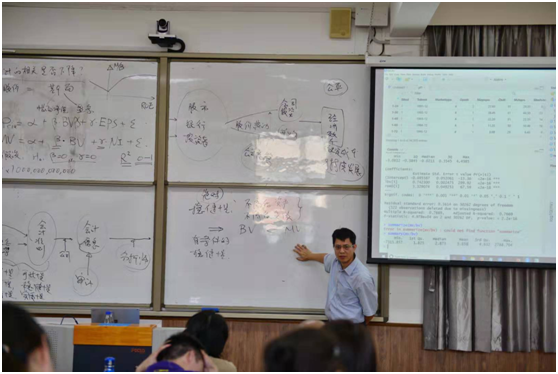 在一系列启发性探讨的铺垫后,叶教授深入浅出地向我们讲解了运用统计学和会计学研究的价值模型,运用数据证伪了中国股价与基本面不符、中国股市主要在投机运作等错误言论。通过“股价=净资产+公司赚取超额回报率的能力”模型,让会计术语与日常经济生活紧密结合。叶教授通过丰富和教学和研究经验,向我们阐述了会计实证研究是会计研究中的一个重要的方向,数字、大数据可以给会计研究带来新鲜的血液。结合大数据技术和学校网站提供的海量数据进行的案例讲解也让同学们突破了对传统会计的认知,进而启发更深层次的思考。