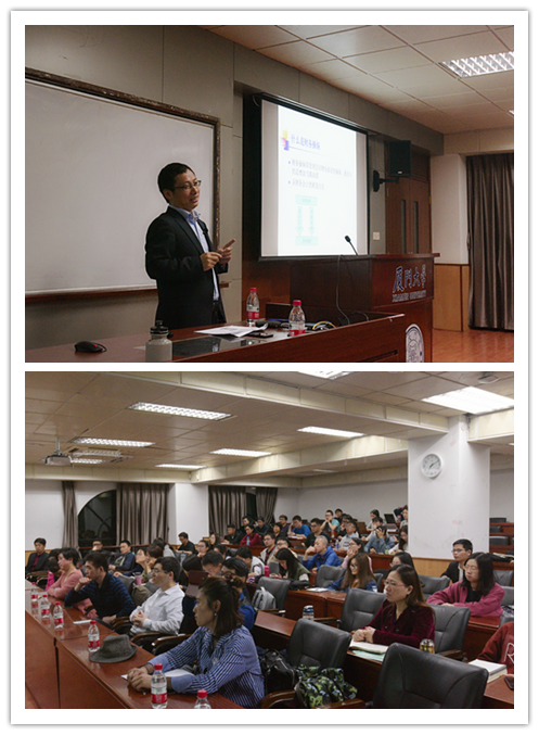 3月24日晚上,厦门大学管理学院专业硕士中心系列讲座之二----拨开财务操纵的迷雾讲座在嘉二201顺利举办。本次讲座特别荣幸邀请到厦门大学会计系校友叶金福学长返校开讲,讲座由专业硕士中心副主任黄炳艺老师主持。本次讲座吸引了众多MPAcc学员、部分会计学硕博士研究生、会计系系友前来参加,讲座现场爆满,气氛热烈。