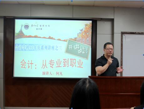 10月15日下午,厦门大学管理学院会计系优秀校友,前监管部门处长及德勤中国高级合伙人、现赛领资本副总经理何凡,在嘉庚二号楼201带给了大家一场题为《会计:从专业到职业》的精彩讲座,本场讲座是庆祝厦门大学会计学科90年系列讲座的第三场。