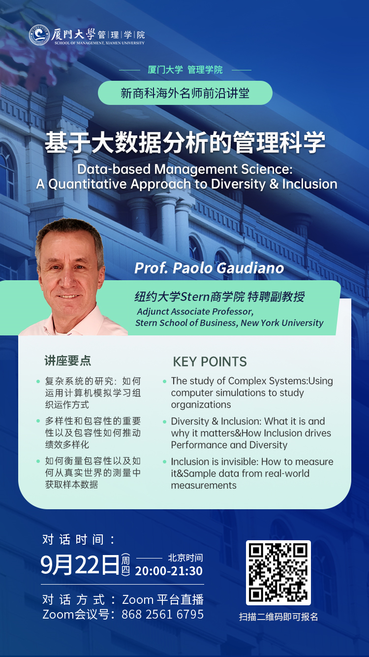 数据时代越来越提倡工作场所的多样性和包容性(D&I)。美国著名的行业分析师和研究人员Josh Bersin将多样性和包容性称为这几年最热门的话题之一。从统计角度来看,现代企业在业务的各个方面都具有多样性和包容性的公司要优于同行。麦肯锡公司研究人员发现,有多元化和包容性的公司比那些没有的公司表现更好。麦肯锡还发现,性别、种族和民族多样性最高的公司在财务上的表现比同类公司高出 35%。我们如何科学的利用大数据和量化分析,更加全面和科学的建立适合自身的多样性和包容性(D&I)人力资源管理策略,将是我们作为人力管理者和企业管理者重要的研究方向。在本次讲座,学生将接触到大数据分析时代的人力管理多样性和包容性策略。