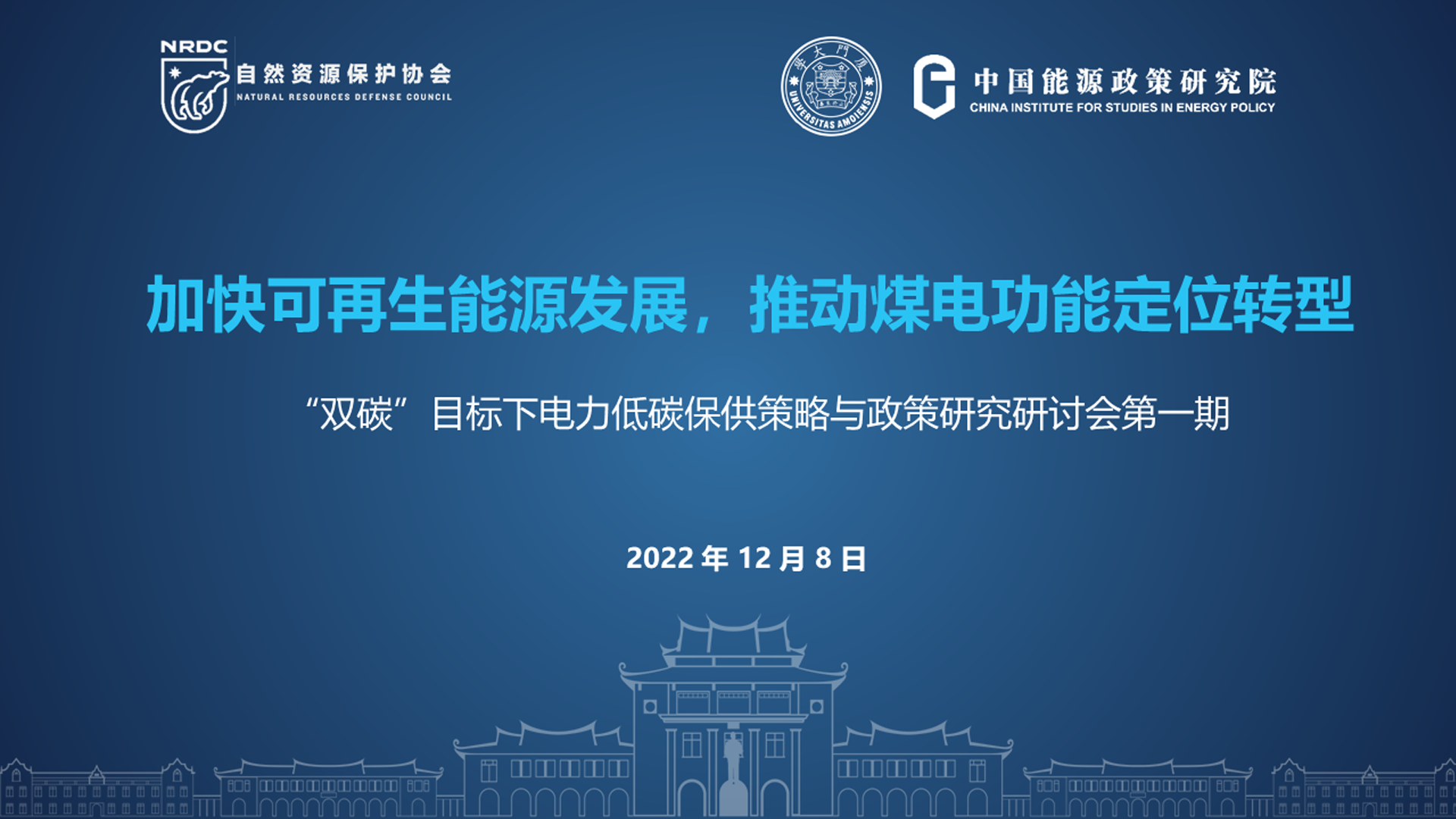 “双碳”目标下电力低碳保供策略与政策研究系列研讨会由自然资源保护协会和厦门大学中国能源政策研究院联合主办。作为“双碳”目标下电力低碳保供策略与政策研究第一次研讨会暨系列研讨启动会,聚焦加快可再生能源发展,推动煤电功能定位转型。