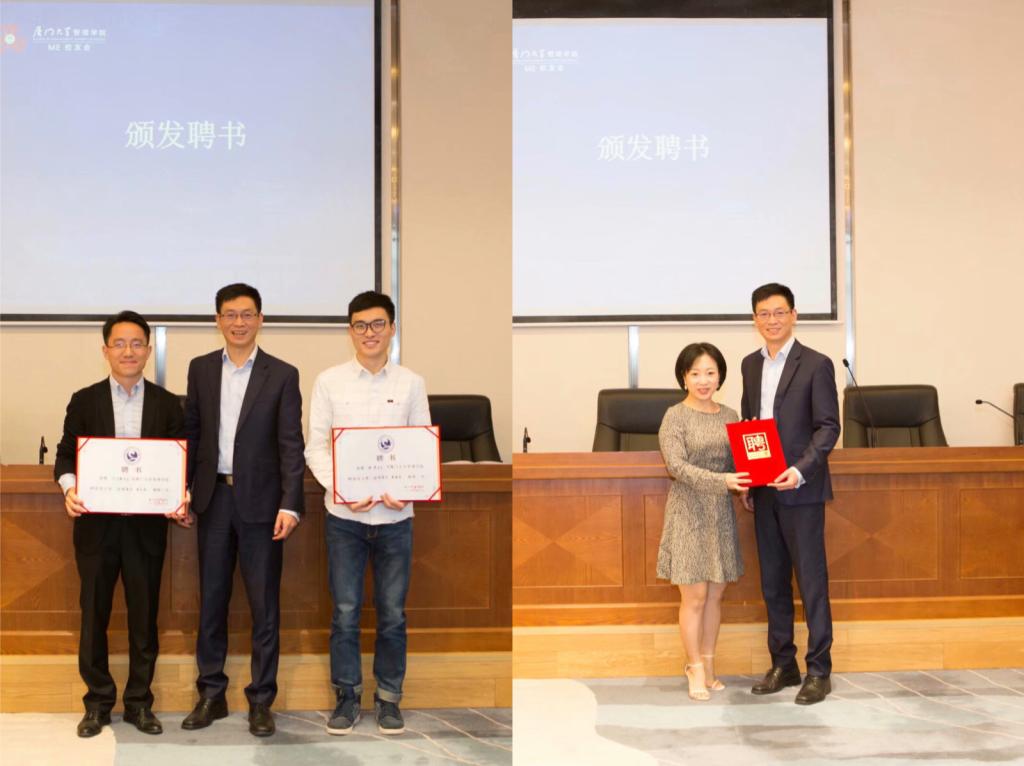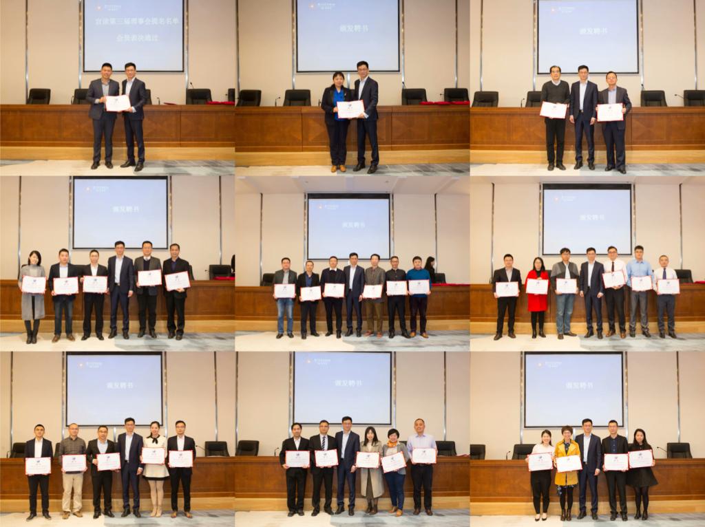 会议聘请了计国君教授等九人作为校友会顾问,第二届ME校友会会长陈辉煌获得荣誉会长,之后,会议宣读第三届理事会提名名单并进行表决,蒋英当选会长,陈劲等26人当选副会长,林华生当选秘书长,陈燕鹭当选常务副秘书长,张景等28人当选副秘书长,并邀请管理学院专业硕士中心蔡舜主任为各位当选理事现场颁发聘书。