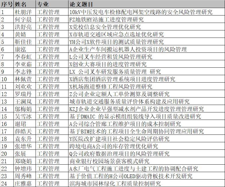 厦门大学管理学院工程管理专业学位硕士论文开题报告安排