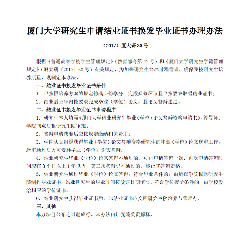 厦门大学研究生学制或在校年限超期警示书