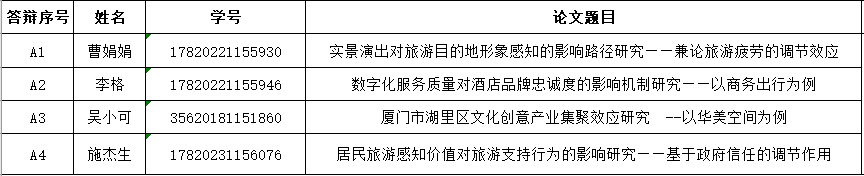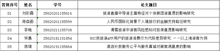 管理学院旅游管理硕士MTA2025年11月研究生论文答辩具体答辩安排请见下表。