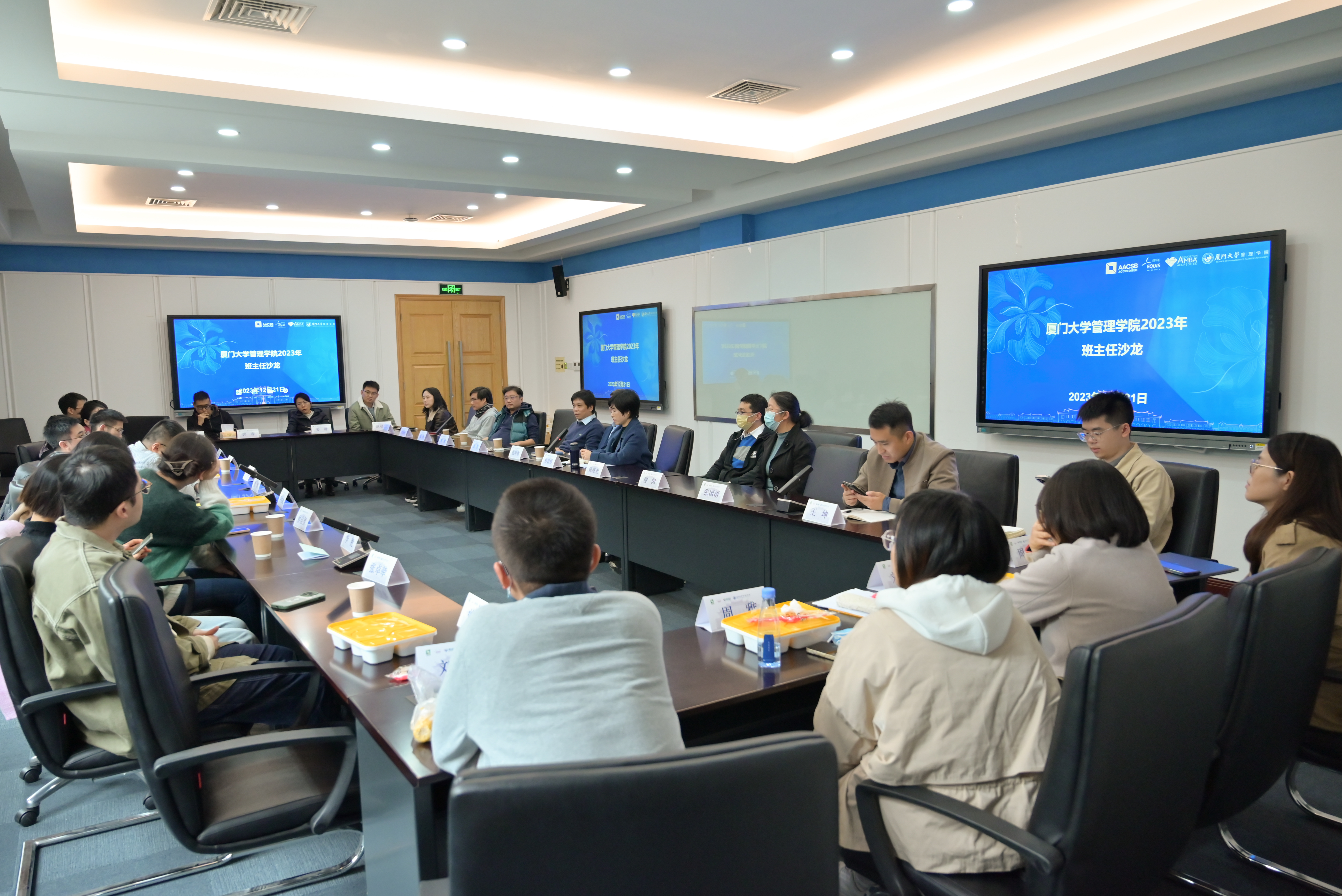 12月21日中午,管理学院班主任沙龙在嘉庚一100顺利举行,管理学院党委书记张明智,本科生新老班主任代表、辅导员出席。活动由管理学院党委副书记郑碧娇主持。