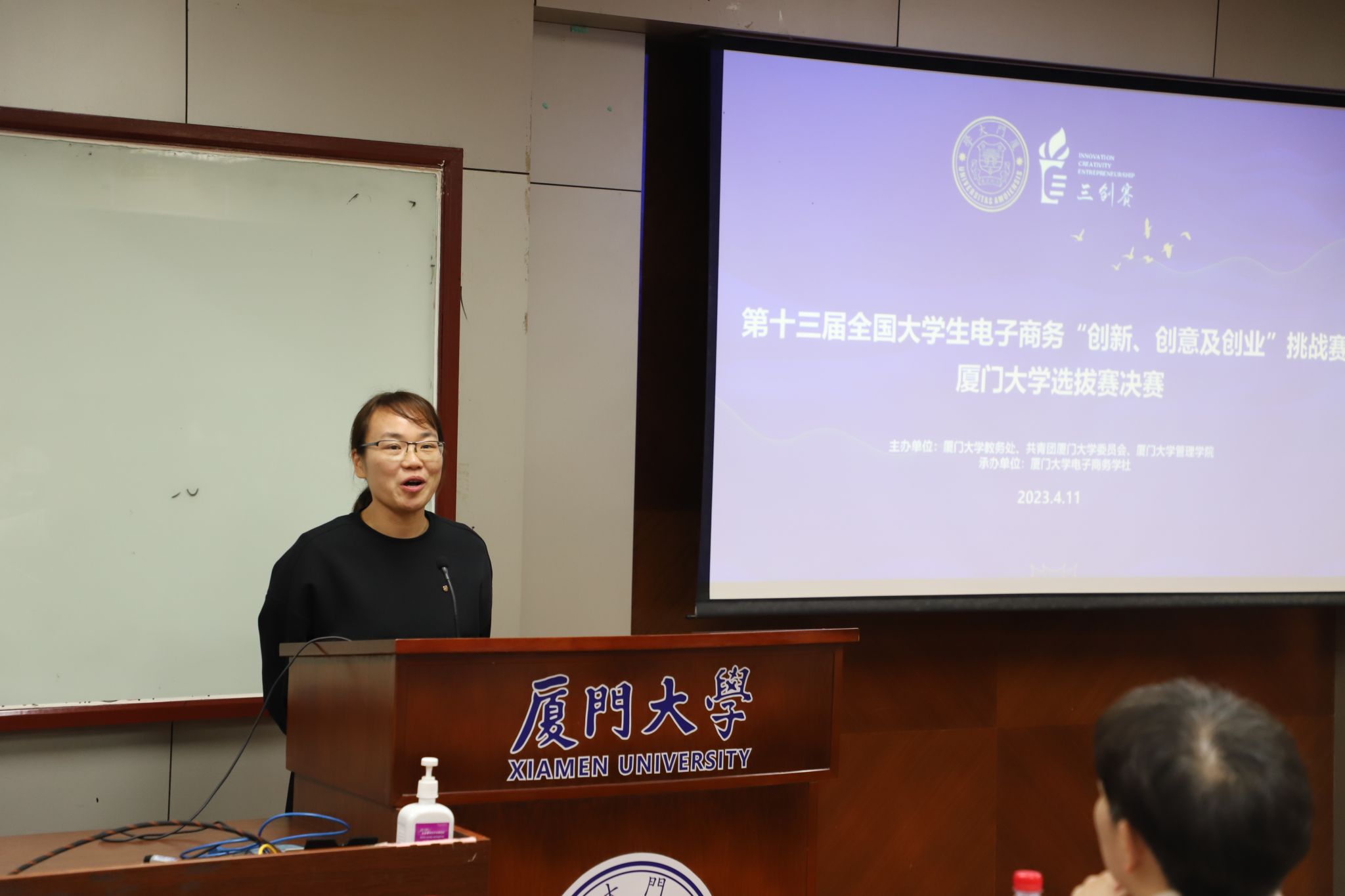 第十三届三创赛厦门大学选拔赛从2022年11月下旬开始宣传到2023年2月底的报名审核,再到4月上旬的校赛初赛,报名参加的队伍共计44支,参赛师生253人,来自校内外二十多个学院。2023年4月11日下午,第十三届全国大学生电子商务“创新、创意及创业”挑战赛厦门大学选拔赛决赛顺利进行。