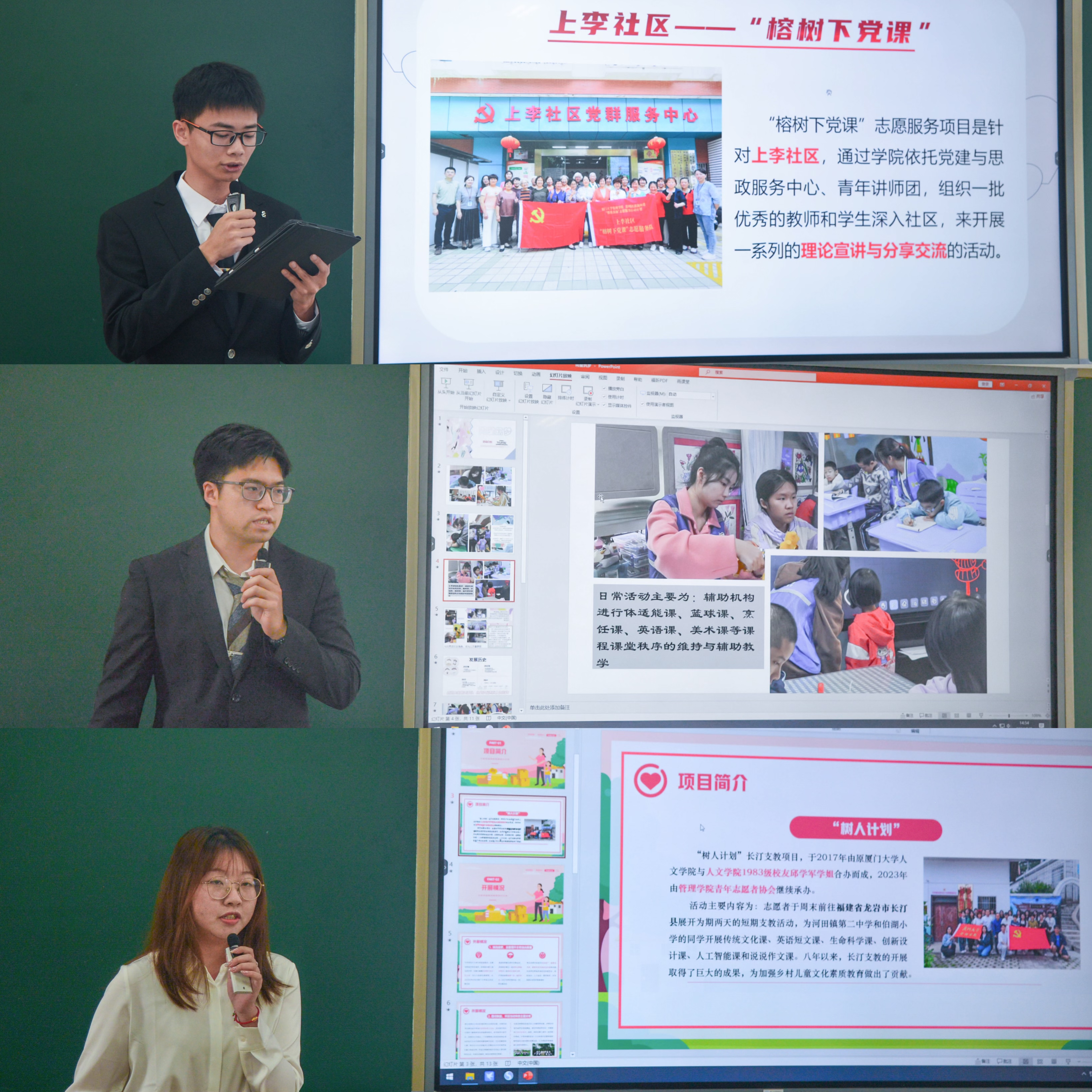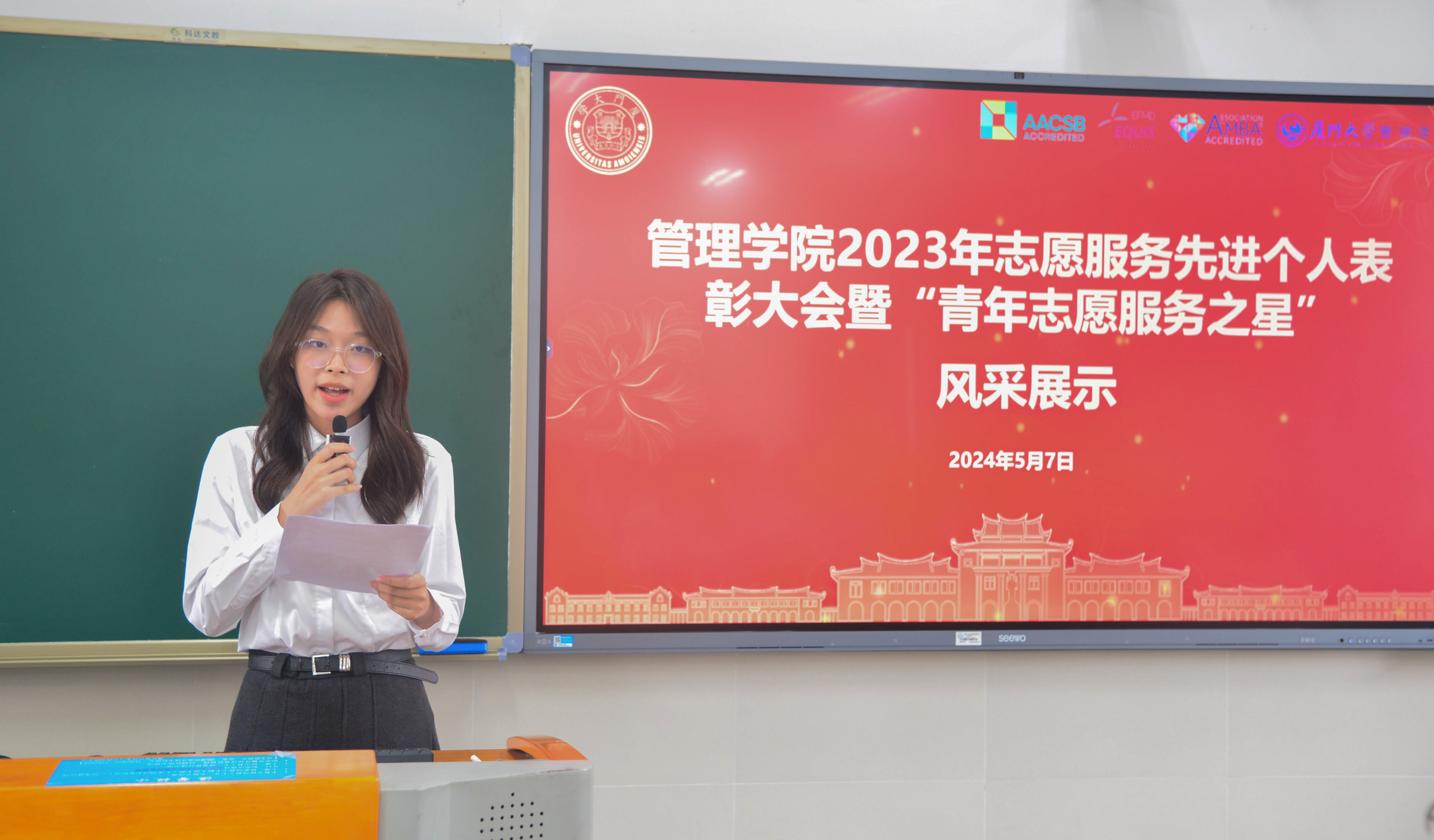 为更好地开展新时代志愿服务,传承新时代雷锋精神,激励青年大学生自觉服务祖国、奉献社会,在志愿服务的过程中实现人生价值,5月7日,管理学院2023年志愿服务先进个人表彰大会暨“青年志愿服务之星”风采展示在南强二301举行。管理学院党委副书记周民钦,团委书记蒋超杰,团委副书记揭上锋、黄劲夫,辅导员曹惠真、刘颖、谢宇崧出席此次活动。大会由2022级本科生卢欣雅主持。