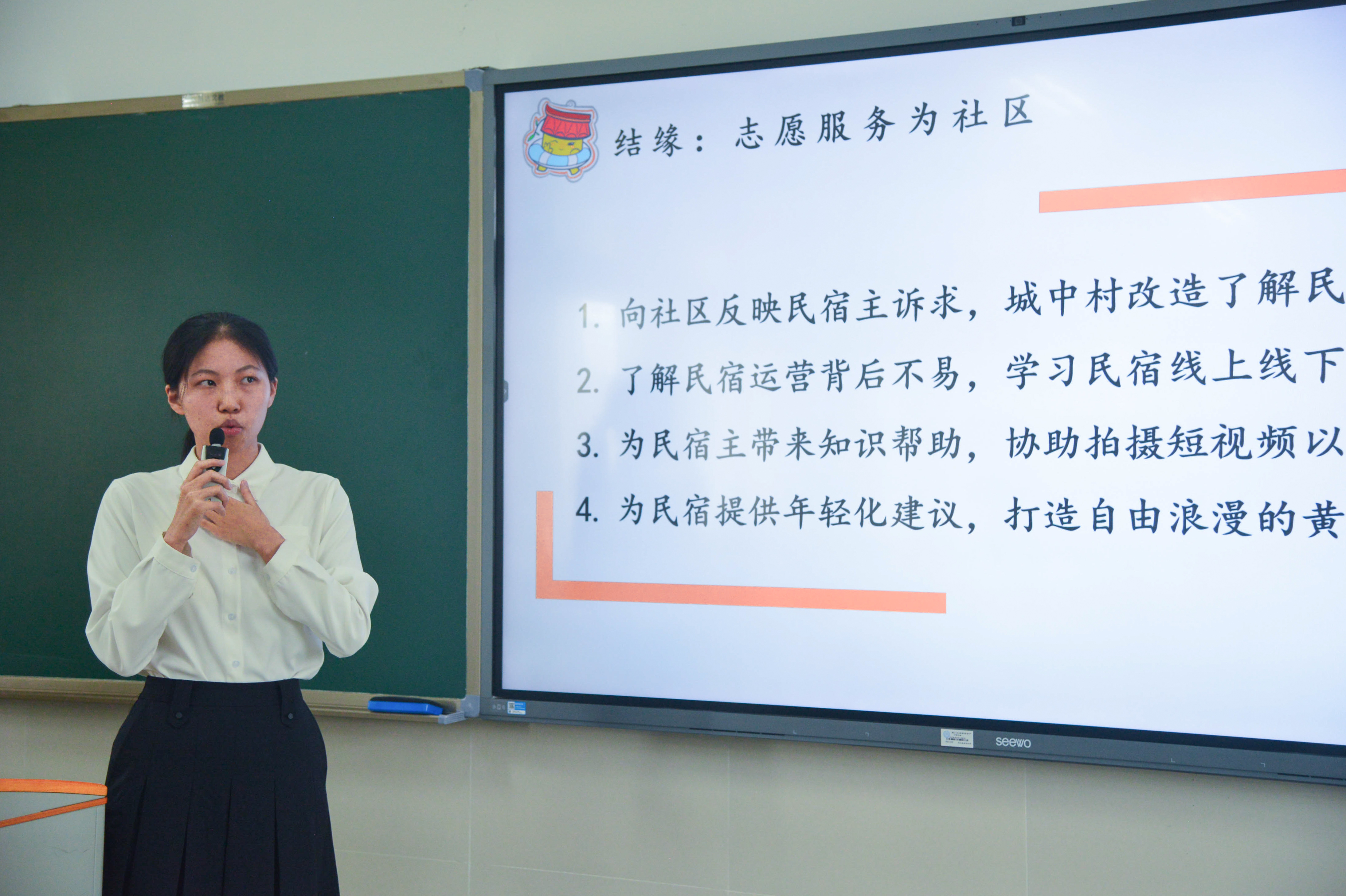 “青年志愿服务之星”获奖代表李亦琦、程允中、王紫瑞依次进行志愿服务风采展示。李亦琦同学娓娓道来她与黄厝社区的“缘起、缘定、缘聚、结缘”四部曲,分享深入基层社区开展志愿服务的深刻感悟与体会;程允中同学讲述了参与大型赛会志愿服务的经历,在服务中,擦亮担当奉献的“底色”、保持友爱互助的“本色”、提升团结进步的“成色”;王紫瑞同学回顾了在图书馆与学习共享空间的志愿服务经历,她将志愿服务与学校学风建设要求相结合,号召更多同学通过志愿服务带动大家勤勉努力、潜心学术,共同营造严谨认真、积极向上的良好学风。