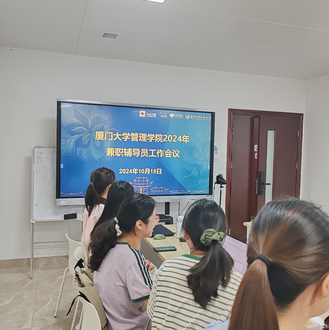 10月18日上午,厦门大学管理学院2024年兼职辅导员工作会议在嘉庚二109举行。管理学院党委副书记郑碧娇、周民钦及全体专兼职辅导员参会。会议由管理学院团委书记蒋超杰主持。