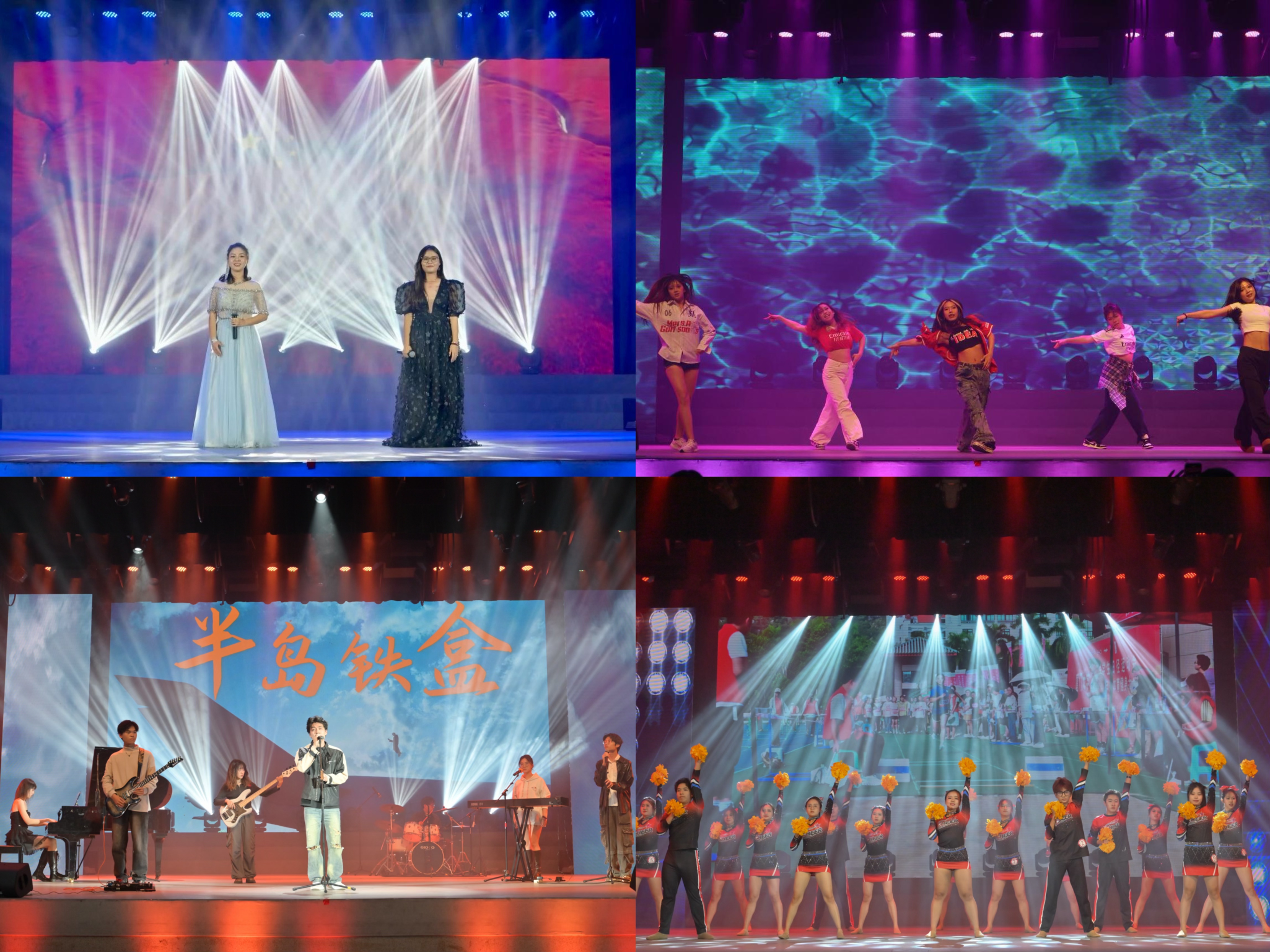 每一颗星星都代表着一个梦想,每一束光芒都预示着希望的启航,这个夜晚见证了青春的璀璨与梦想的飞扬。半岛铁盒乐队的旋律,唤醒了心灵深处的共鸣;连续六年获得校啦啦操比赛一等奖的管理学院啦啦操队带着热烈的舞步,伴随着热血澎湃的校运会总结视频,展现出管院学子的青春活力。《如愿》、《行走的鱼》以勇气之音,激励同学们冲破迷雾,追求成长。《EASY》的舞步则释放自由的灵魂,引领同学们进入恣意的青春世界。他们的表演,带大家回顾了管院的高光时刻,点燃了现场的气氛,也传递着青年的担当与梦想,为迎新晚会的序幕增添了无限光彩,迎接着每一个新面孔的加入。